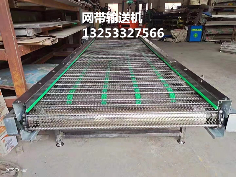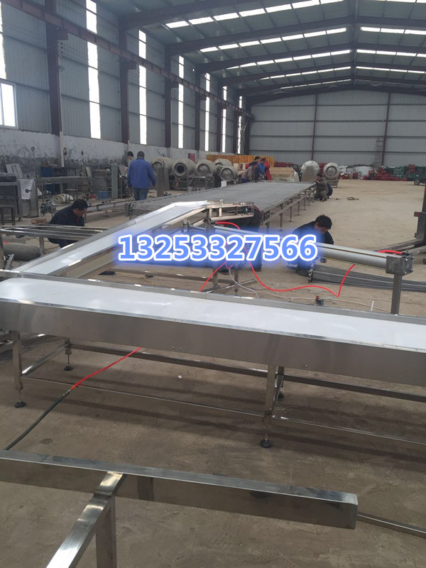 1〉 经过原料生产区,把加工好的馅和活好的面传送至饺子机。2〉饺子机生产后,成品饺子爬坡上到饺子输送机。3〉饺子输送机把饺子集中传送到平板输送带。4〉平板输送带将饺子运送到分散摆头,分散摆头均匀的将饺子散铺在冷冻网带上。5〉经过约20--30分钟的速冻,饺子落入成品料仓,进行包装。6〉生产工艺完成。7〉从饺子机出来饺子到成品出库,中间只需一人巡回检查。河南市场哪里有卖饺子冷冻输送带的,豆制品摊凉机价格,输送机是在一定的线路上连续输送物料的物料搬运机械,又称连续输送机。输送机可进行水平、倾斜和垂直输送,也可组成空间输送线路,输送线路一般是固定的。输送机输送能力大,运距长。不锈钢输送机采用不锈钢网带作为载体进行输送,适用于各种食品行业的烘干、蒸煮、油炸、去湿、冷冻等及金属行业的冷却、喷淋、清洗、沥油、热处理等工艺。结构形式有:水平直线输送、提升爬坡输送等形式,输送带可增设提升挡板、侧挡板。调速方式有:变频调速、无极变速