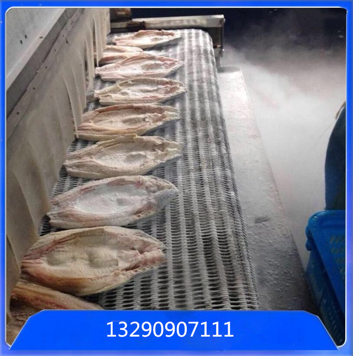平度市水饺速冻隧道厂家速冻水饺速冻隧道说明:该设备由饺子输送机、食品分散机、速冻隧道,成品输送机、成品料仓等5大部分组成。整套设备整体采用工业用不锈制作,304材质网带,运行平稳,可为企业提供多种食品的生产,一机多用,降低运行成本,全部功率约为4.5kw,配套设备安装有变频调速,输送带为食品级皮带,安全卫生,输送重量比较大以及质量不均匀等物料的时候,就会使得输送机因载重负荷强度过大而达不到输送带的张力,从而造成输送带的撕裂;当输送机滚筒和输送带之间的摩擦能力比较低的时候,就会引发输送机的打滑现象发生。食品速冻分散摆头结构是输送机、平板输送带、分散摆头、速冻网带和成品料仓组成。功率全部共计4KW左右。